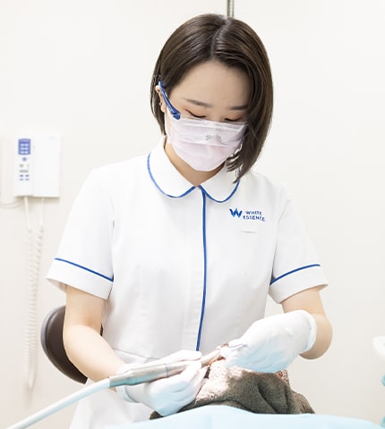 当院では、4名の常勤歯科衛生士が歯磨きの仕方から、デンタルフロス・歯間ブラシの使い方、食生活の改善点、日常生活での注意点の管理と指導を行ったのち、歯周病治療と予防処置を行っていきます。